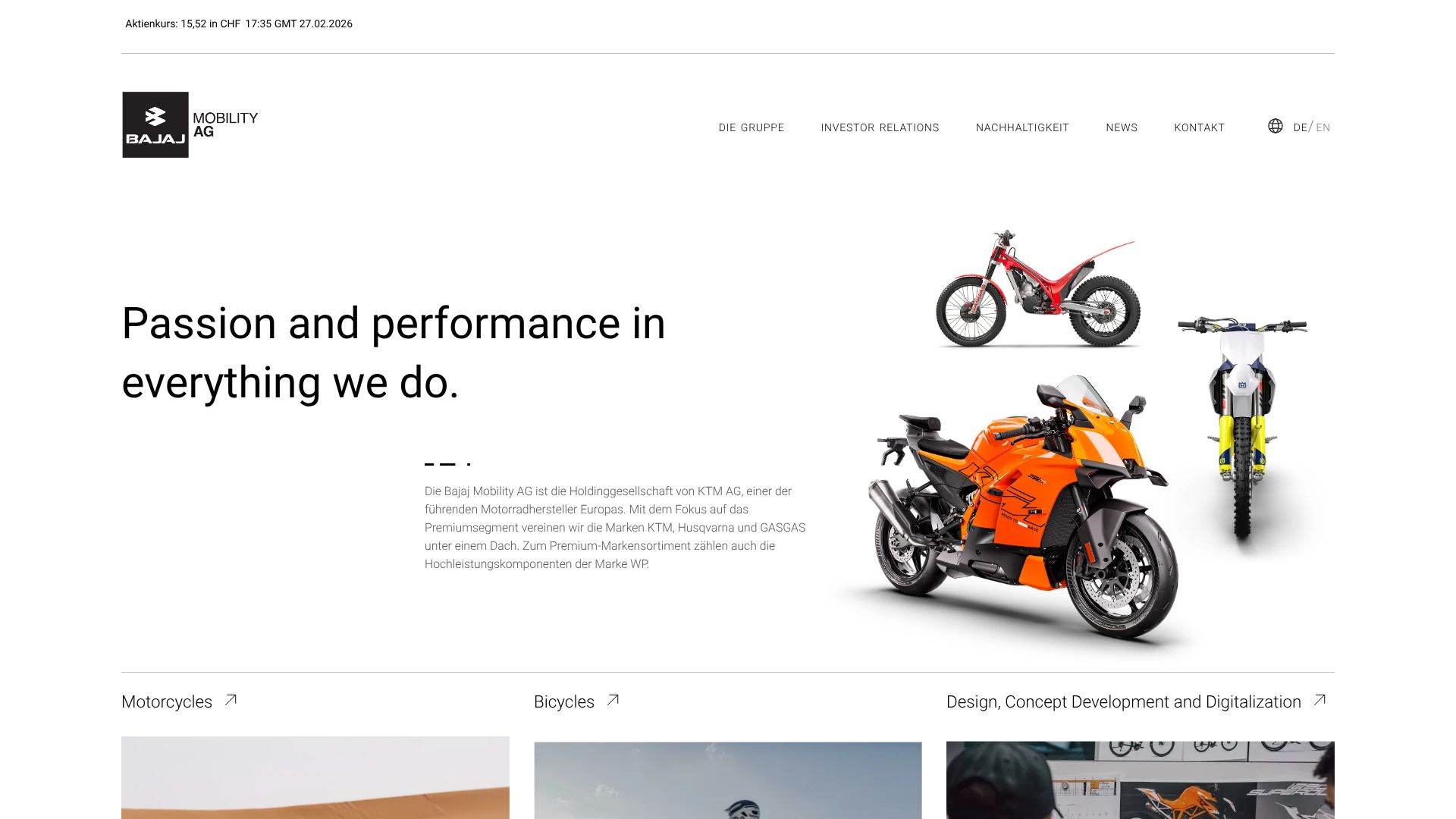 Bajaj Mobility (früher Pierer Mobility bzw. KTM Industries) ist ein Motorradhersteller mit Sitz in Mattighofen (Österreich). Kernmarken sind seit der umfassenden Restrukturierung von 2025 KTM, GasGas und Husqvarna. Notiert ist die Aktie an der SIX Swiss Exchange sowie an der Wiener Börse – aber auch in Frankfurt.