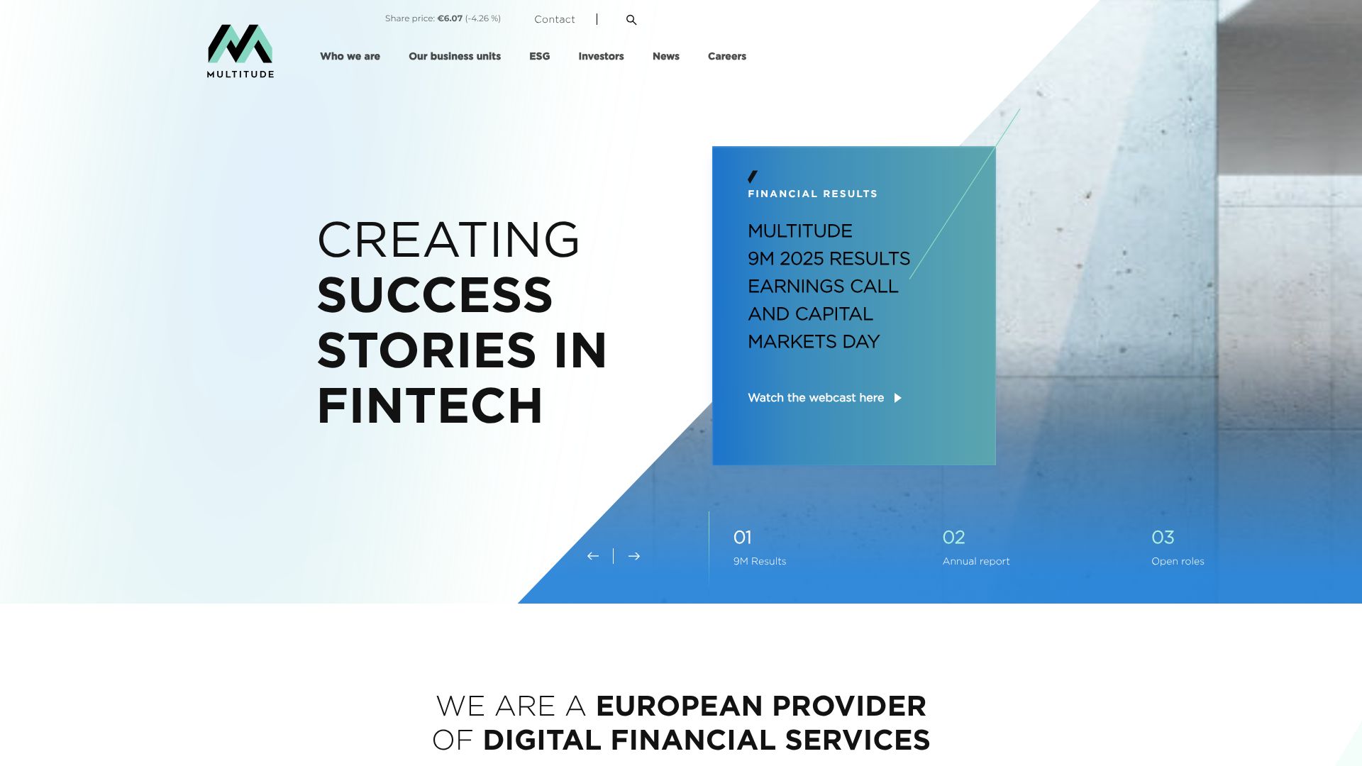 Das Kernprodukt von Multitude (ex Ferratum) sind mobile Mikrokredite mit einem Nominalwert unterhalb von 500 Euro. Die Gesellschaft wurde 2005 in Helsinki gegründet. Anfang 2015 erfolgte der Börsengang in Frankfurt.