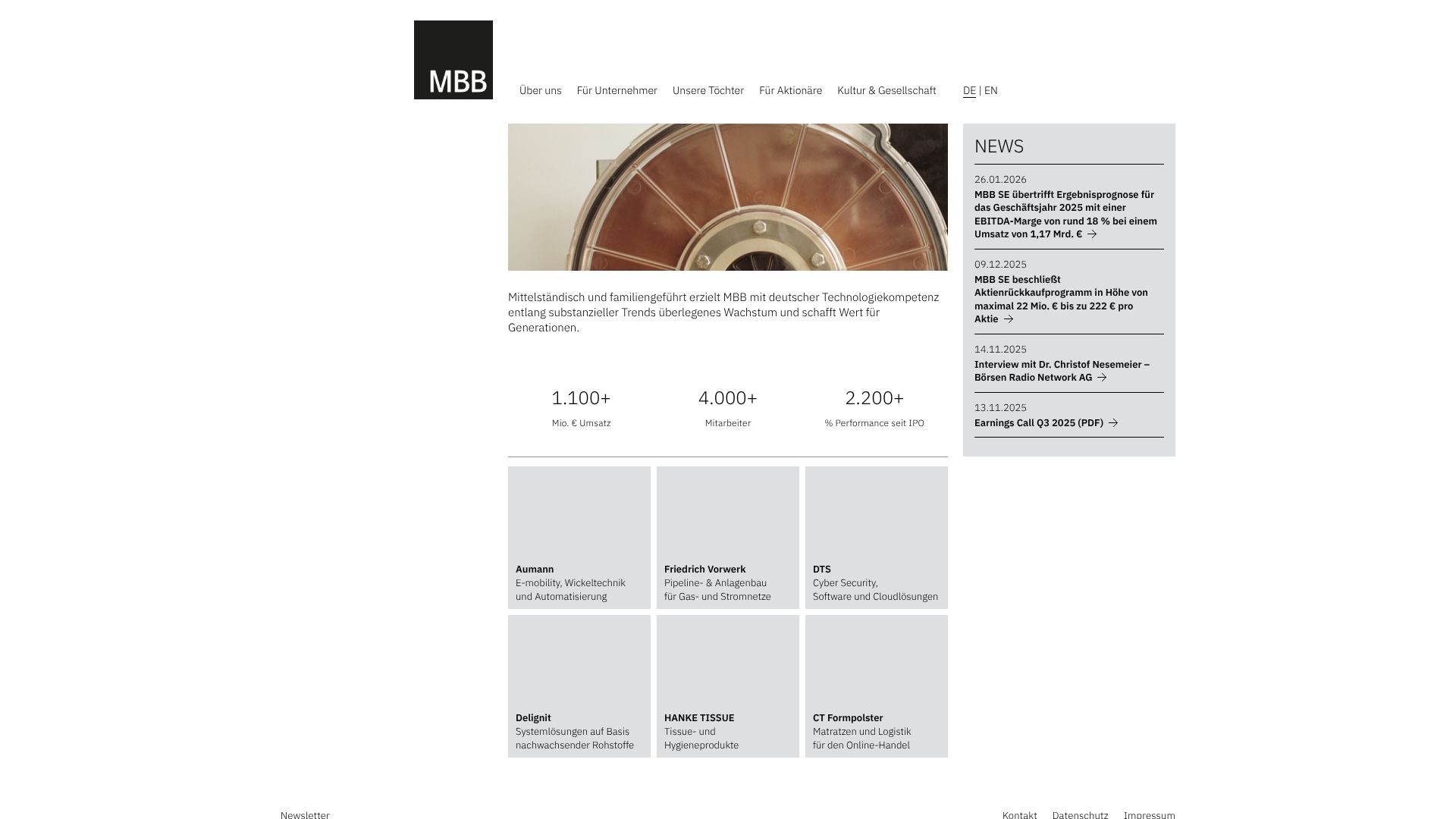 MBB ist eine familiengeführte Beteiligungsgesellschaft. Zum Portfolio der Berliner gehören unter anderem die ebenfalls gelisteten Aumann und Delignit. Gegründet wurde MBB im Jahr 1995.