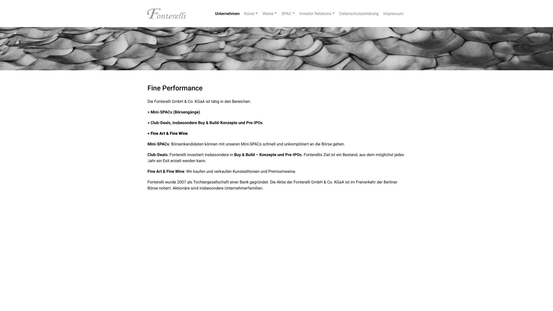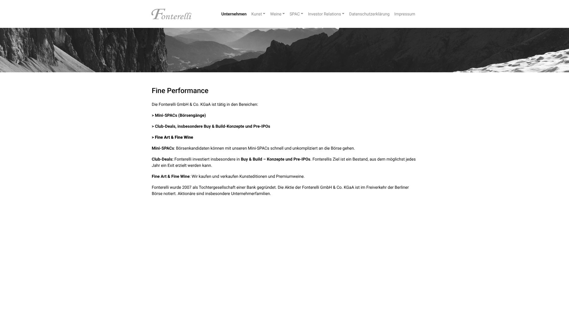 Fonterelli wurde 2007 gegründet und positioniert sich heute als Beteiligungsgesellschaft mit Fokus auf Buy & Build – sowie als Handelshaus mit wertbeständigen Gegenständen. Offiziell ist die Aktie delistet.
