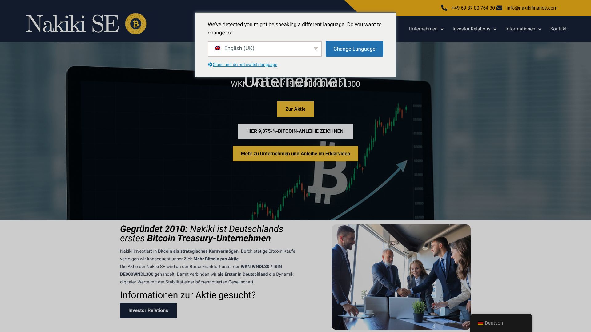 Die in Frankfurt ansässige Nakiki will sich als Bitcoin-Treasury-Gesellschaft positionieren. Notiert ist die Gesellschaft seit April 2024 – im Börsenmantel der früheren windeln.de.