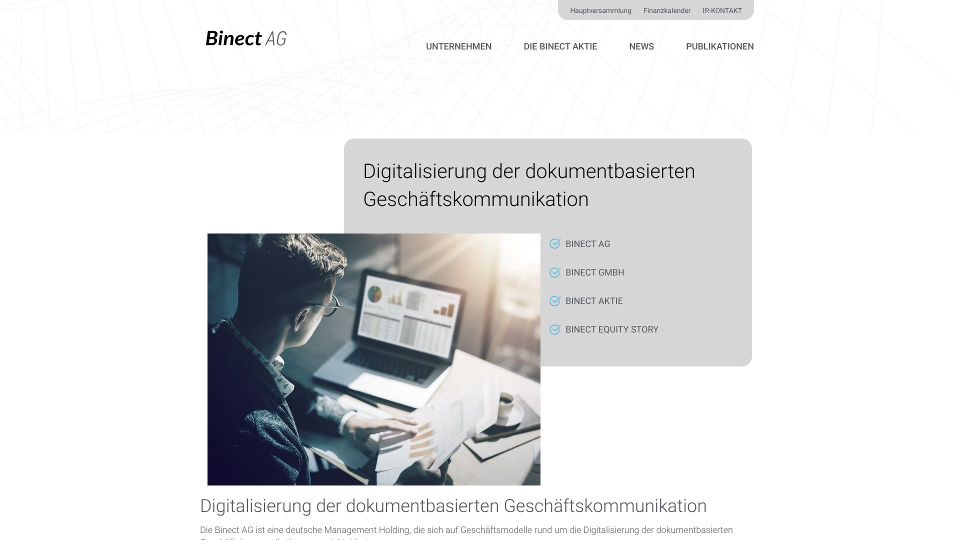 Den aktuellen Geschäftsbericht von Binect herunterladen