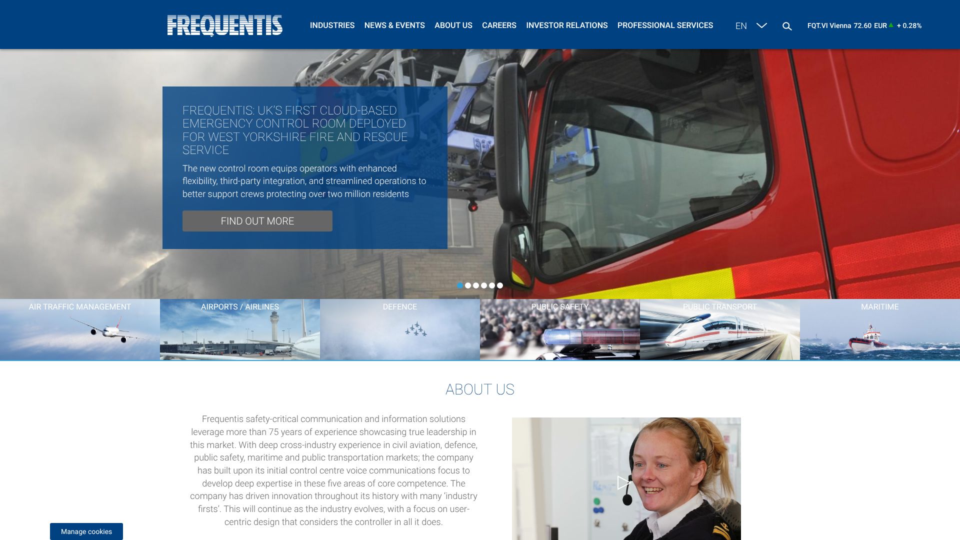 Frequentis bietet professionelle Kommunikationssysteme für die zivile Luftfahrt, Verteidigung, öffentlichen Sicherheit, Schifffahrt und Verkehr an. Der Firmensitz befindet sich in Wien. An die Börse gegangen ist Frequentis im Mai 2019.