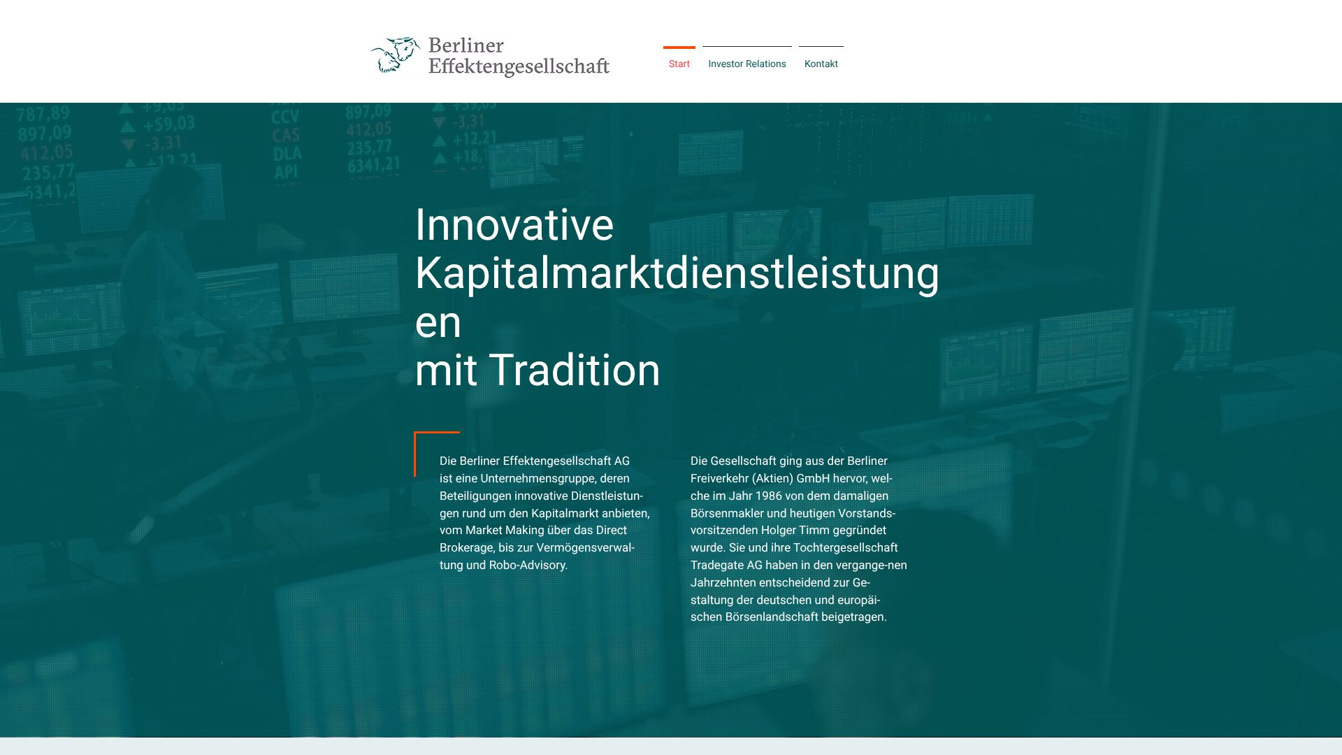 Die Berliner Effektengesellschaft ist eine Finanzholding mit den Kernbeteiligungen Tradegate und der Quirin Privatbank. Gegründet wurde die Gesellschaft mit Sitz in Berlin 1986 von dem Börsenmakler und heutigen CEO Holger Timm.