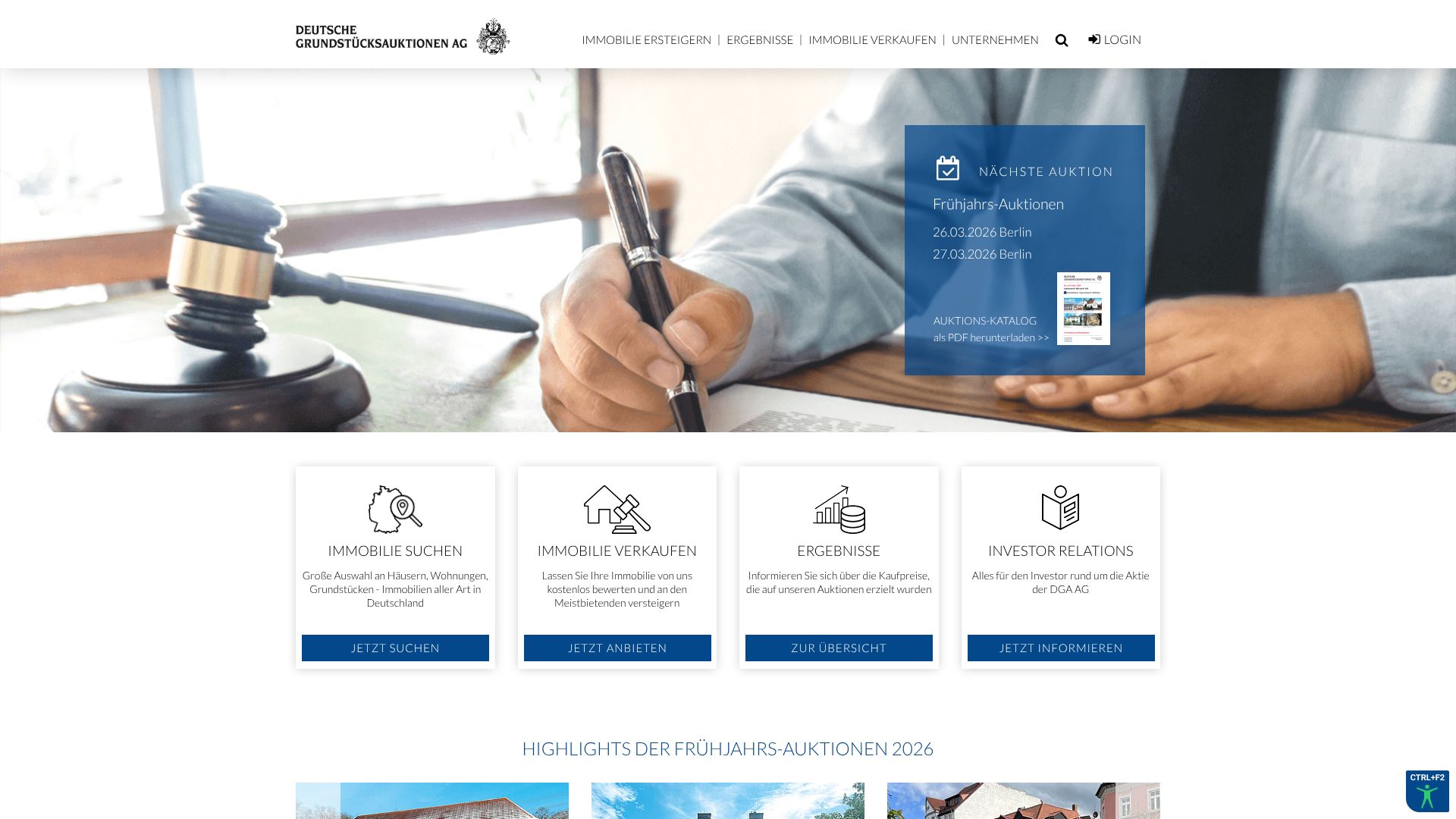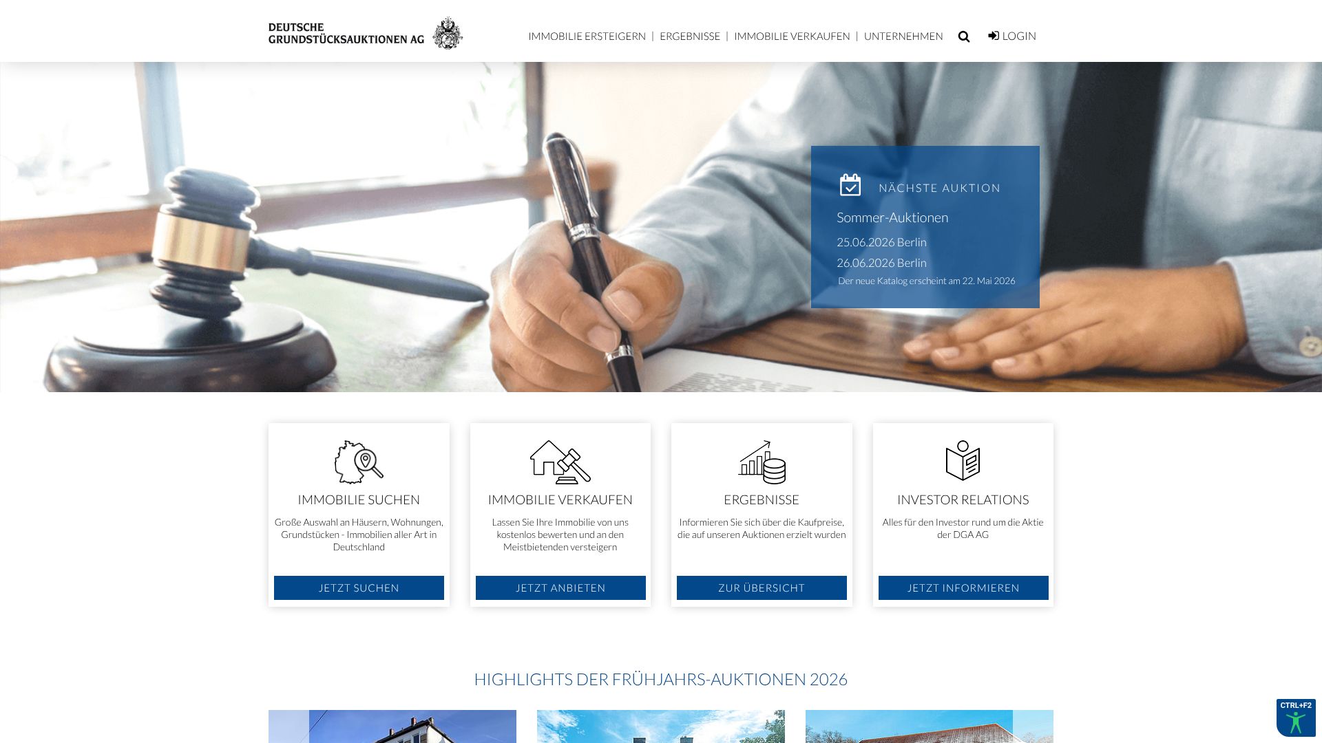Seit über 30 Jahren ist Deutsche Grundstücksauktionen (DGA) als größtes deutsches, privates Grundstücksauktionshaus in Berlin mit sechs Auktionshäusern bundesweit tätig. Gelistet ist die Aktie der DGA im m:access der Börse München.