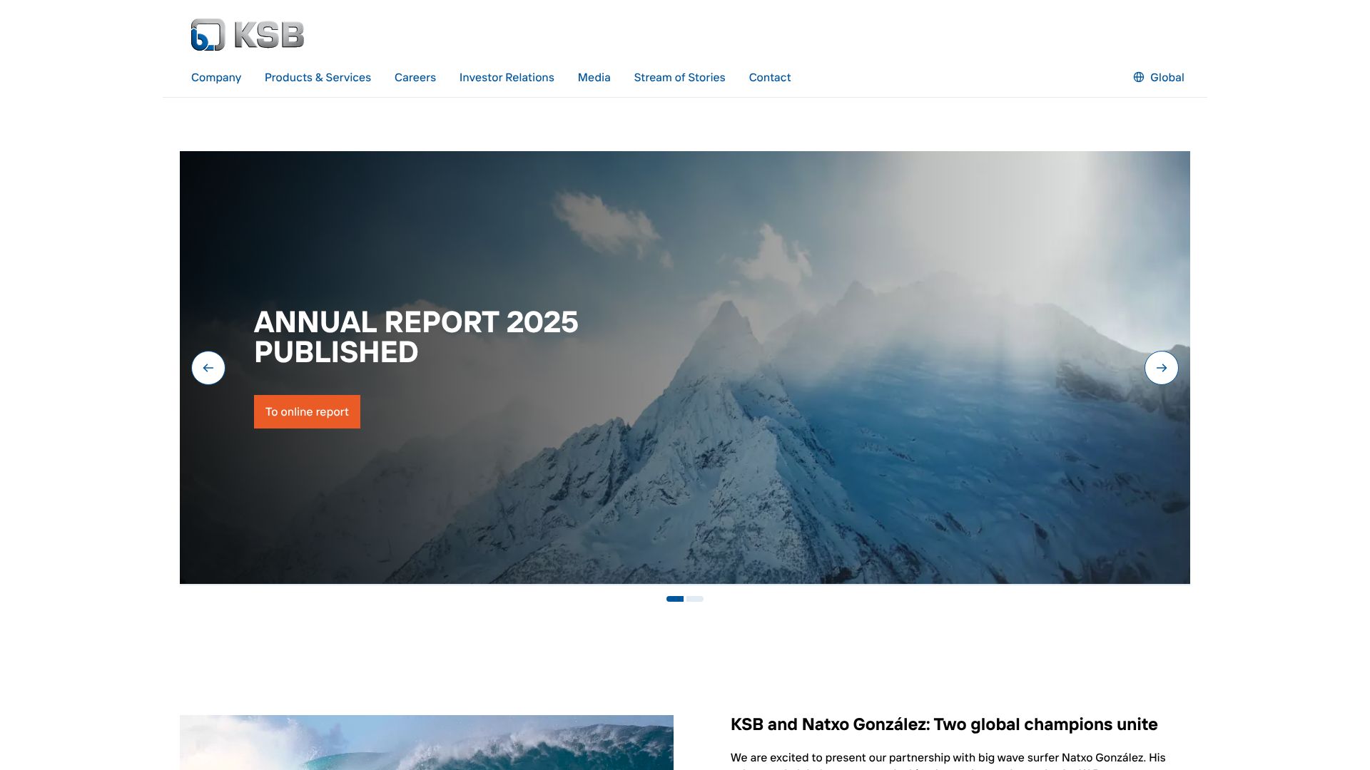 KSB zählt zu den führenden Anbietern von Pumpen, Armaturen und zugehörigen Serviceleistungen. Eingesetzt werden die Produkte der Frankenthaler (Pfalz) in der Gebäudetechnik, Bergbau, Industrie sowie dem Wassersektor.