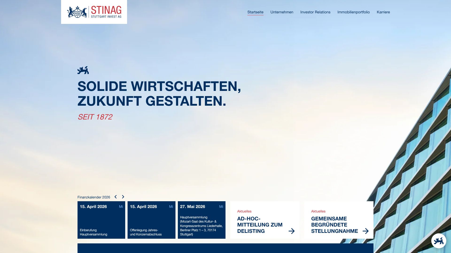 Headquarter Stinag Stuttgart Invest: boersengefluester.de (BGFL) has always attached great importance to showing where the companies have their headquarters - in other words, where they are rooted regionally. We have therefore always linked the company address in our database to the map material from Google Maps using an exact plus code. .