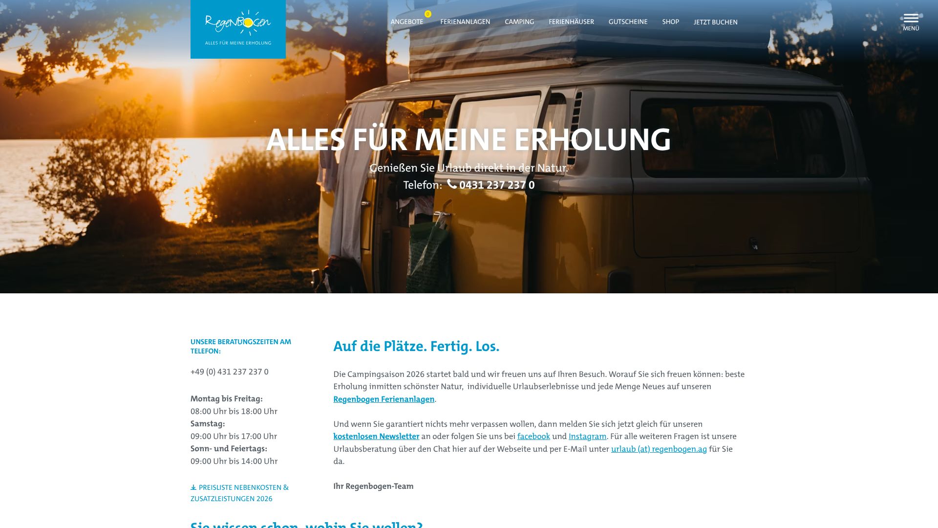 Die Regenbogen AG betreibt Camping-und Ferienanlagen – vorzugsweise an der Ost- und Nordsee. insgesamt umfasst das Portfolio zurzeit 13 Anlagen. Der Firmensitz des seit 2002 börsennotierten Unternehmens befindet sich in Schönkirchen.