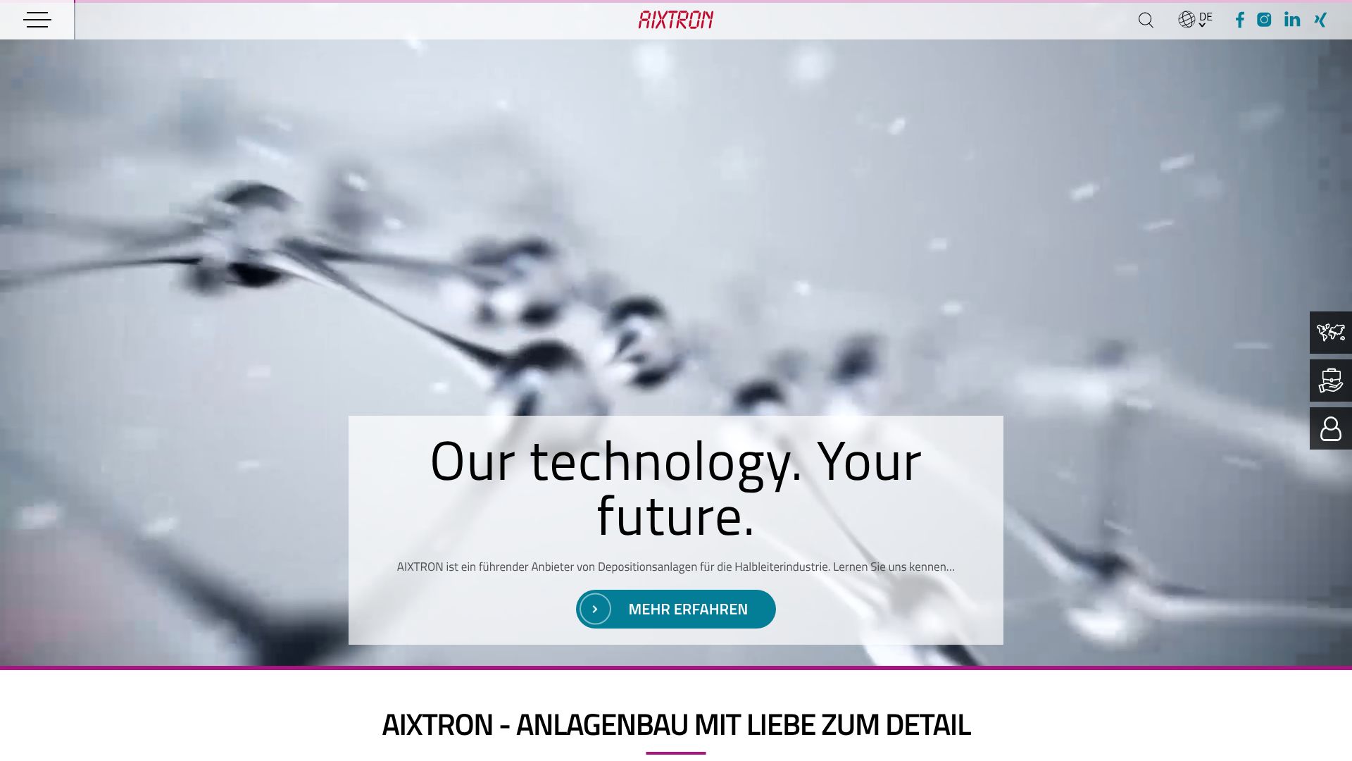 Aixtron stellt Depositionsanlagen für die Halbleiterindustrie her. Das Unternehmen wurde 1983 gegründet und hat seinen Sitz in Herzogenrath. Die Produkte werden zur Herstellung von Bauelementen für elektronische und optoelektronische Anwendungen genutzt.