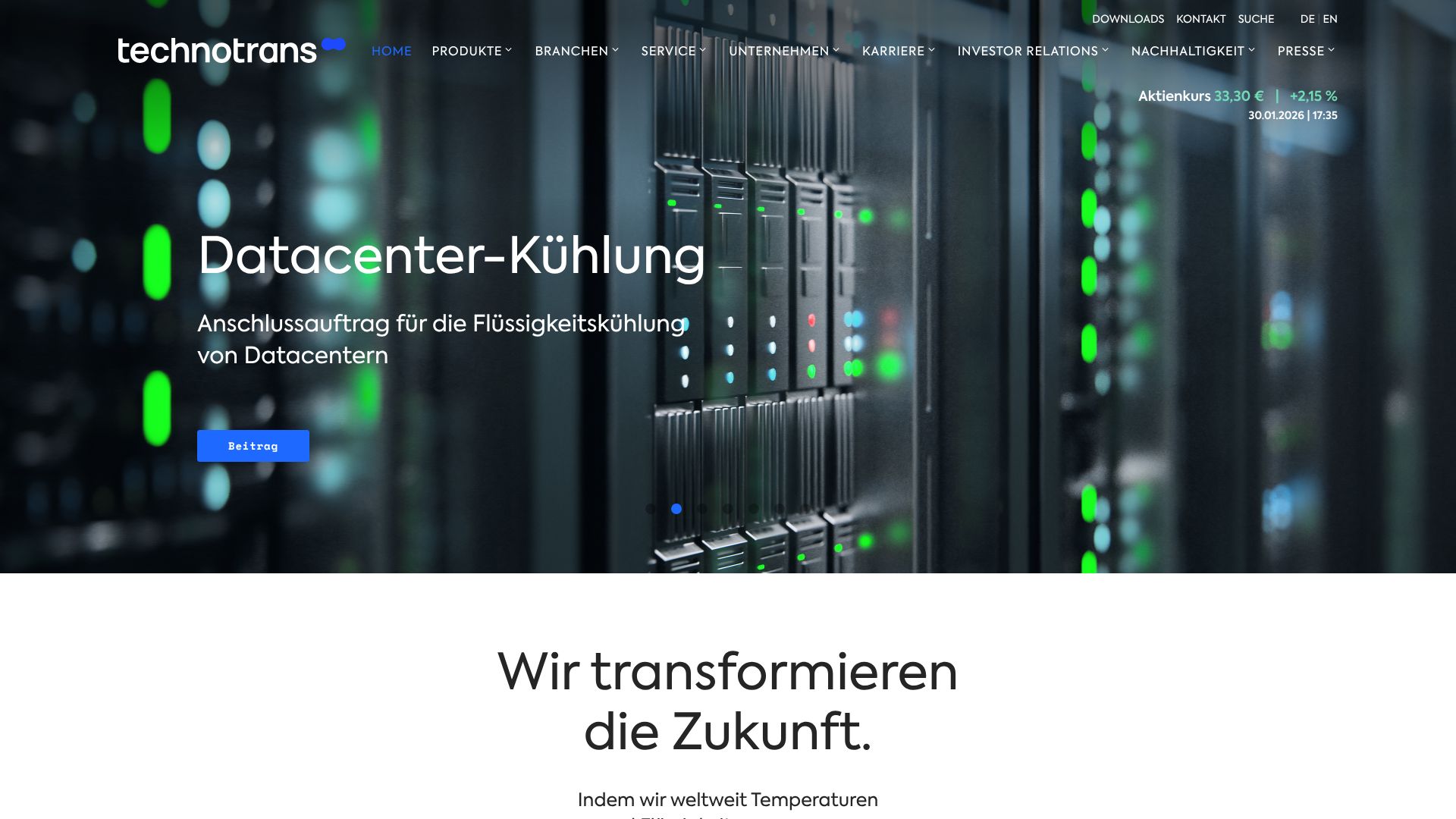 Die Technotrans SE mit Hauptsitz in Sassenberg im Münsterland ist im Bereich des Thermomanagements aktiv. Wichtige Märkte sind Plastics, Healthcare & Analytics, Energy Management und Print.