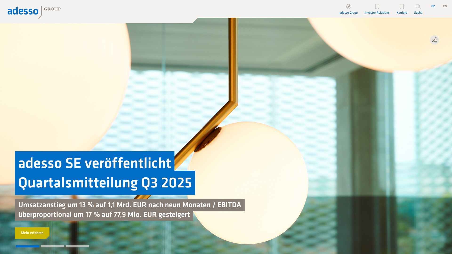 Die adesso SE ist eins der größten deutschen IT-Dienstleistungsunternehmen mit Hauptsitz in Dortmund. adesso sorgt für die Optimierung der Kerngeschäftsprozesse seiner Kunden durch Beratung und Softwareentwicklung sowie die Reduktion von Betriebskosten.
