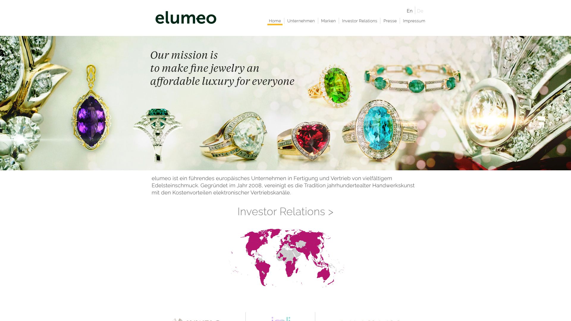 Elumeo vertreibt Edelsteinschmuck über diverse Shoppingsender – am bekanntesten ist hierzulande Juwelo TV. Börsennotiert ist Elumeo seit dem Sommer 2015.