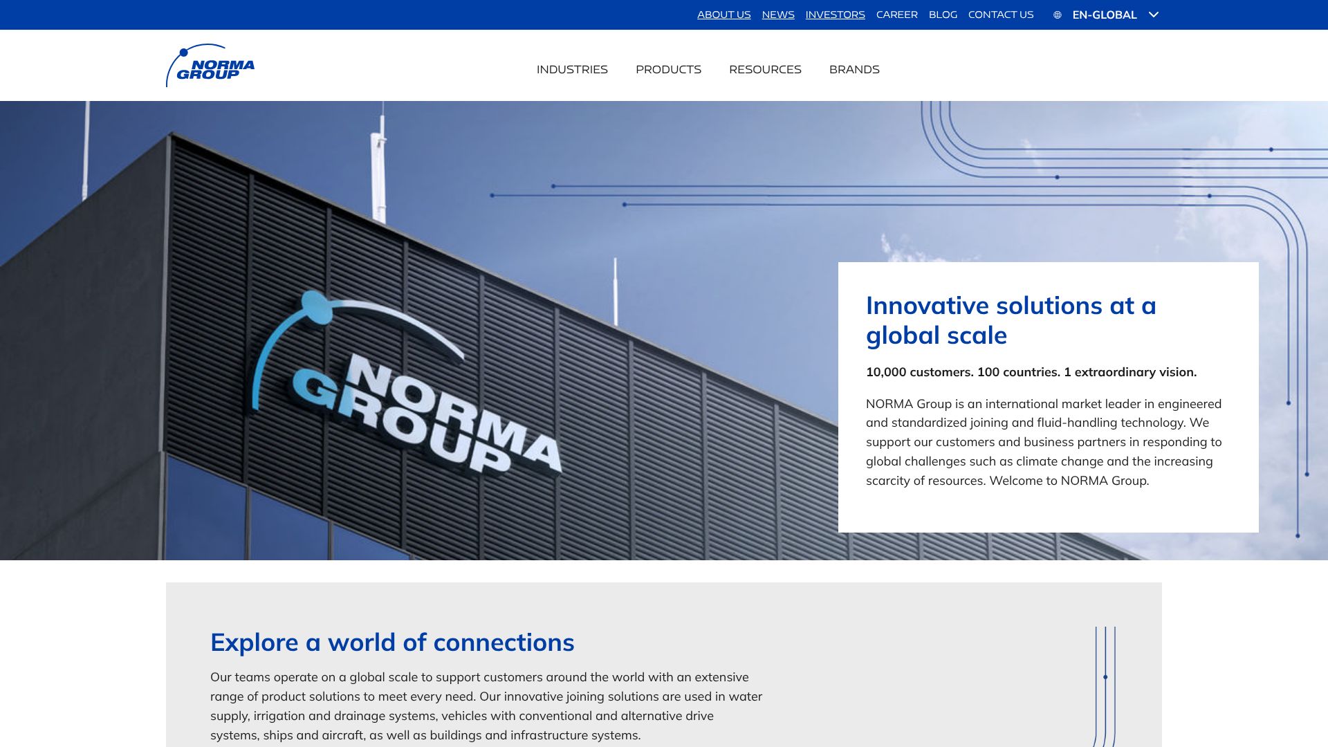 Die Norma Group ist ein Spezialist für Verbindungstechnik (Befestigungsschellen, Verbindungselemente und Fluidsysteme). Das Unternehmen hat seinen Sitz im hessischen Maintal und beschäftigt auf Konzernebene rund 6.500 Mitarbeiter.