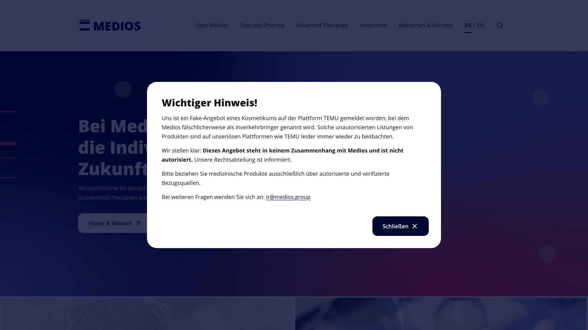 Die Medios AG ist ein Unternehmen aus dem Gesundheitsbereich mit den Schwerpunkten Großhandel und Spezialpharmazeutika. Börsentechnisch ist die Berliner Gesellschaft 2016 aus einer Manteltransaktion mit der früheren Crevalis Capital entstanden.