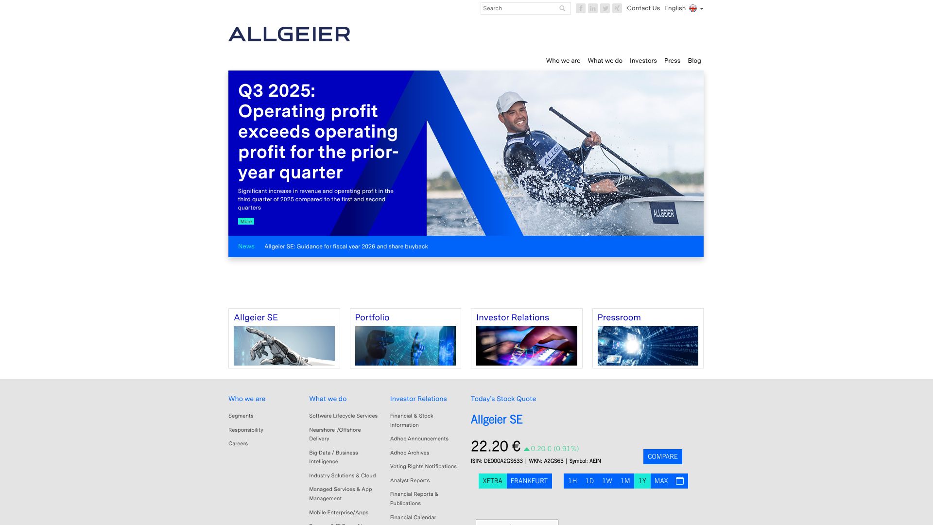 Allgeier ist ein IT-Unternehmen für Business Performance. Mit über 3.000 Mitarbeitern und freiberuflichen IT-Experten bietet Allgeier ein umfassendes Lösungs- und Leistungsportfolio rund um die digitale Transformation.
