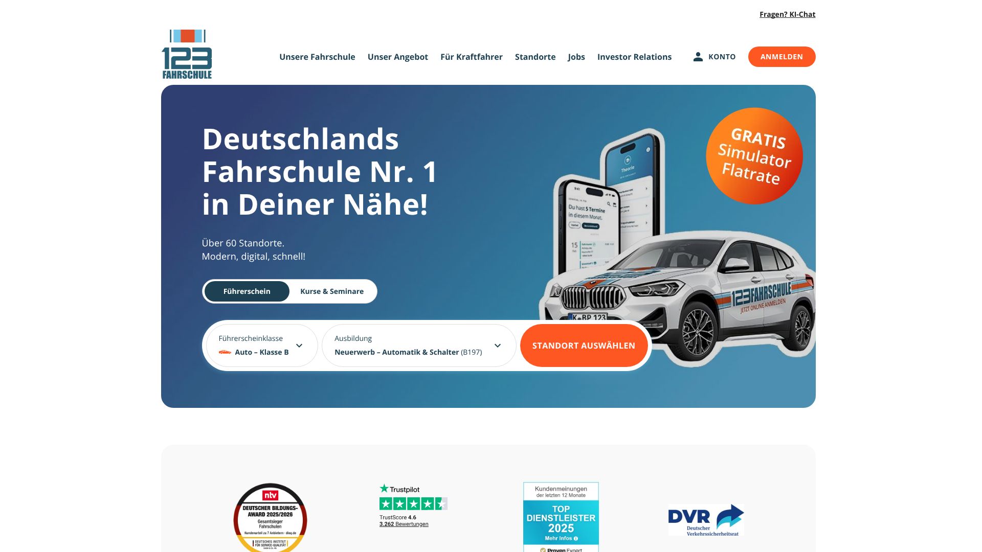 Die 123fahrschule SE mit Sitz in Köln hat sich auf die Konsolidierung und digitale Erweiterung der klassischen Führerscheinausbildung des deutschen Fahrschulmarkts spezialisiert. Notiert ist die Aktie im Freiverkehr.
