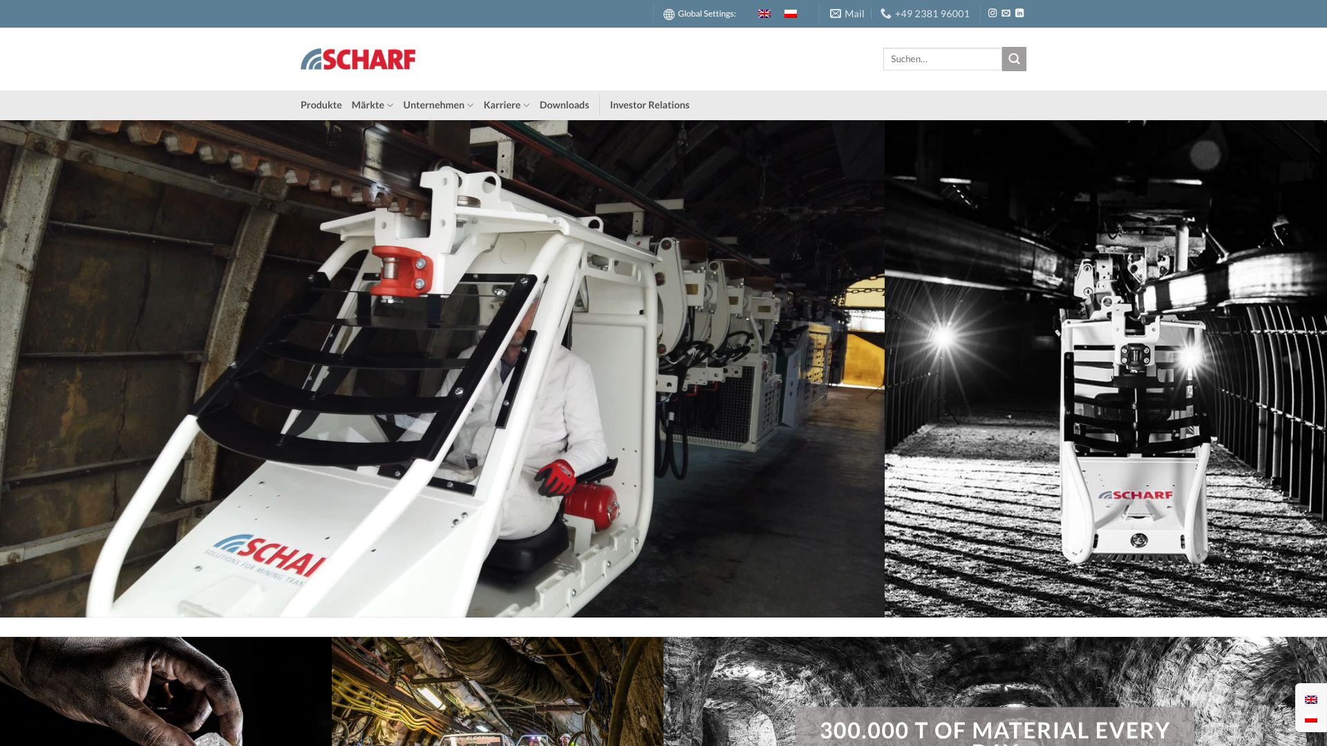 SMT Scharf entwickelt Transportausrüstungen für den Bergbau und den Einsatz in Tunneln. Hauptproduktgruppe sind entgleisungssichere Bahnsysteme, die vor allem in Steinkohle- und Erzbergwerken verwendet werden. Der Firmensitz befindet sich in Hamm.