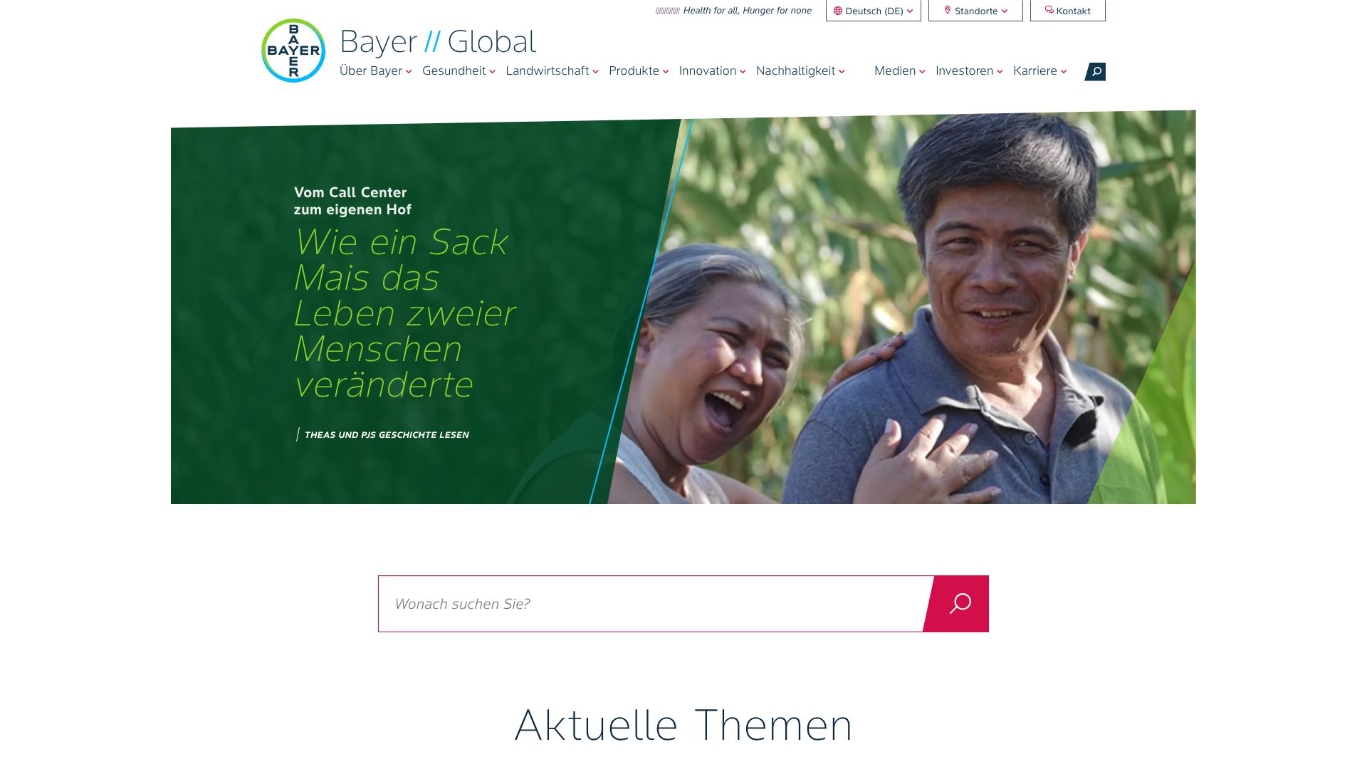 Der Bayer-Konzern ist weltweit auf den Gebieten Gesundheit, Agrarwirtschaft und Polymer-Werkstoffe tätig. Sitz des 1863 vom Farbstoffhändler Friedrich Bayer gegründeten Unternehmens ist Leverkusen.