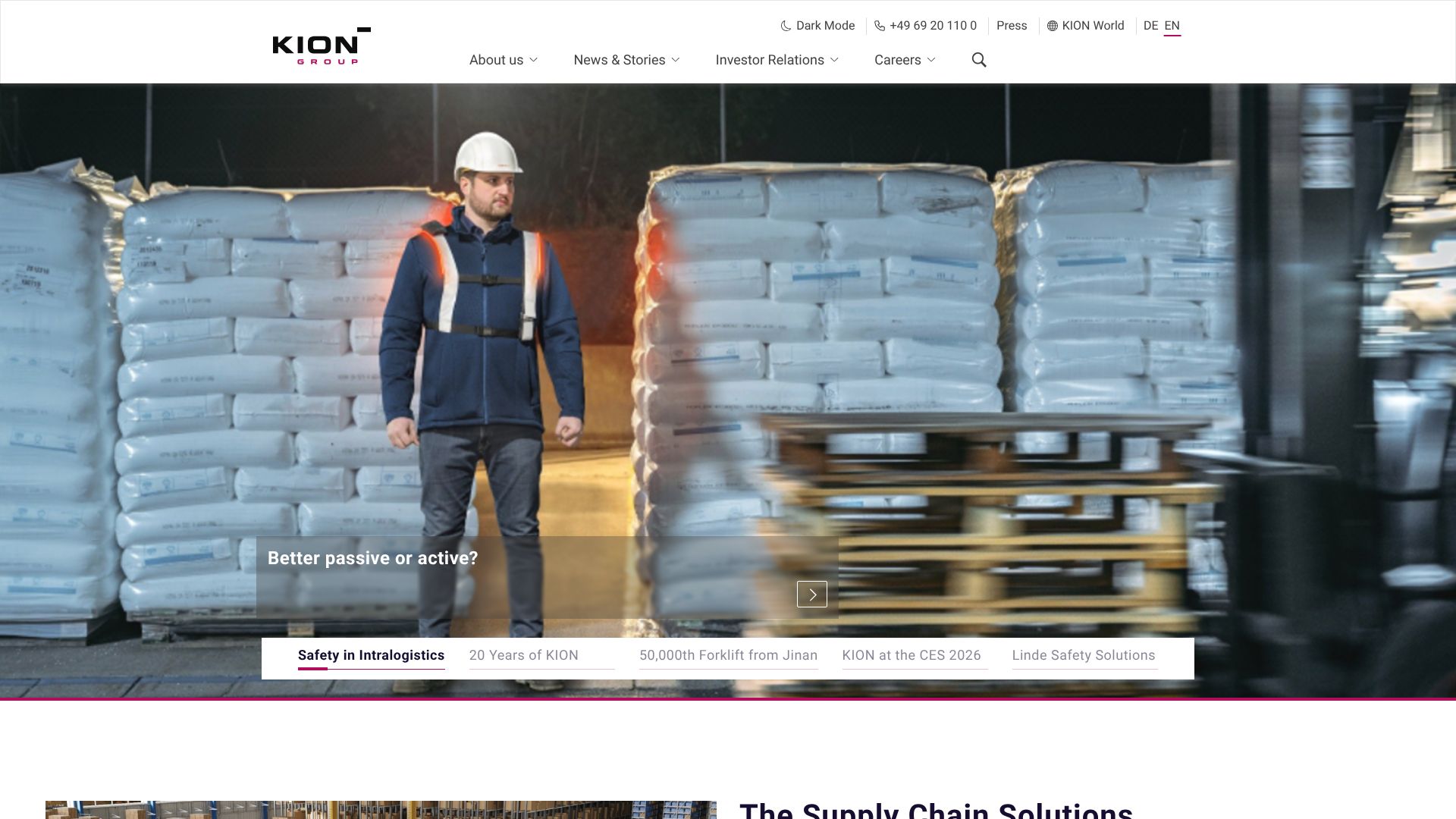 Die Kion Group gehört zu den weltweit wichtigsten Anbietern von Gabelstaplern und anderen Automatisierungslösungen für Lagertechnik. Bekannte Marken sind etwa Linde und Still. Börsennotiert ist die in Frankfurt ansässige Kion Group AG seit Juni 2013.