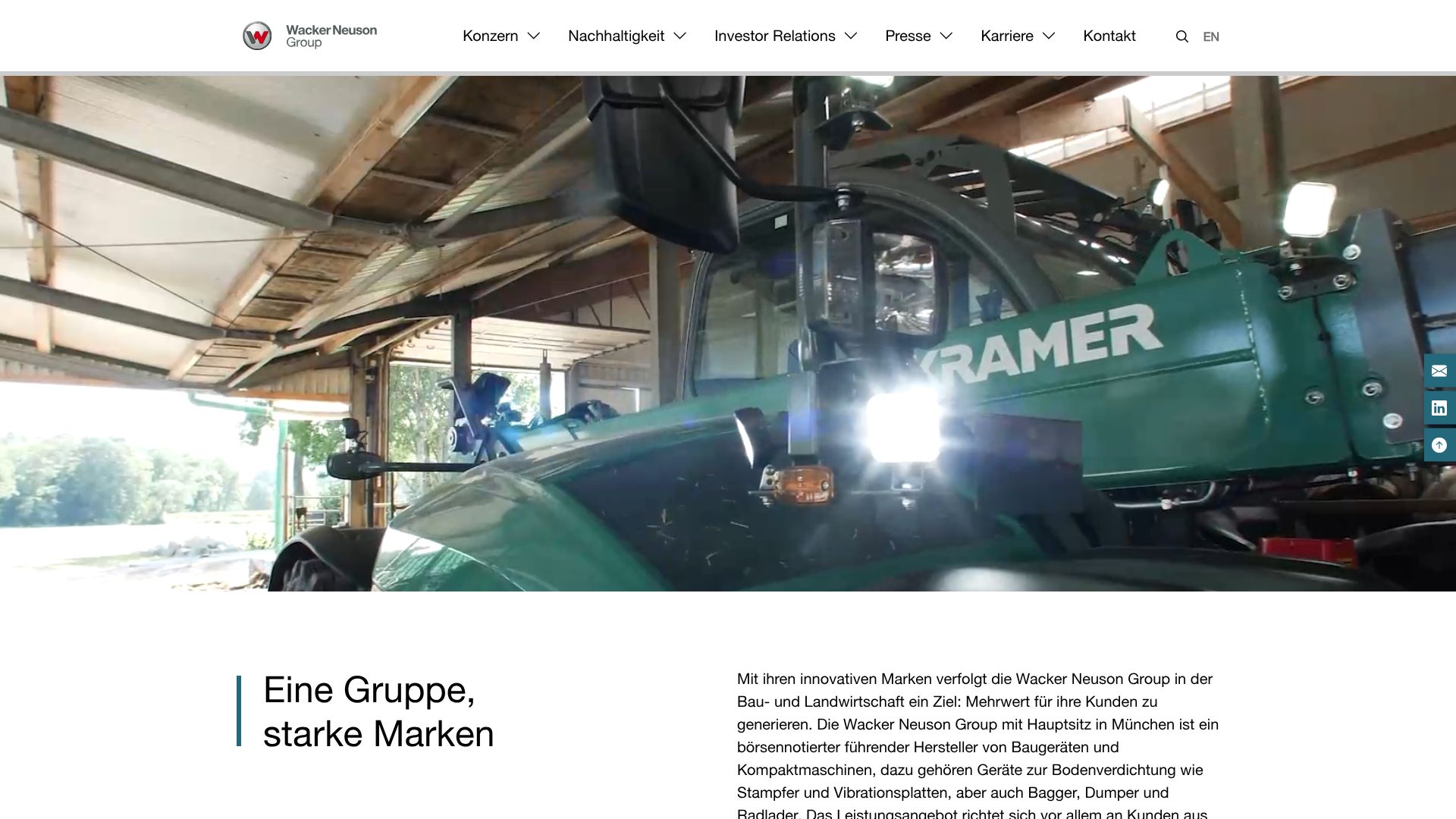 Wacker Neuson stellt Baugeräte und Kompaktmaschinen her. Das Angebot richtet sich an Anwender aus der Bauwirtschaft, dem Landschaftsbau, der Landwirtschaft sowie an Kommunen und Unternehmen aus der Industrie. Börsennotiert sind die Münchner seit Mai 2007.