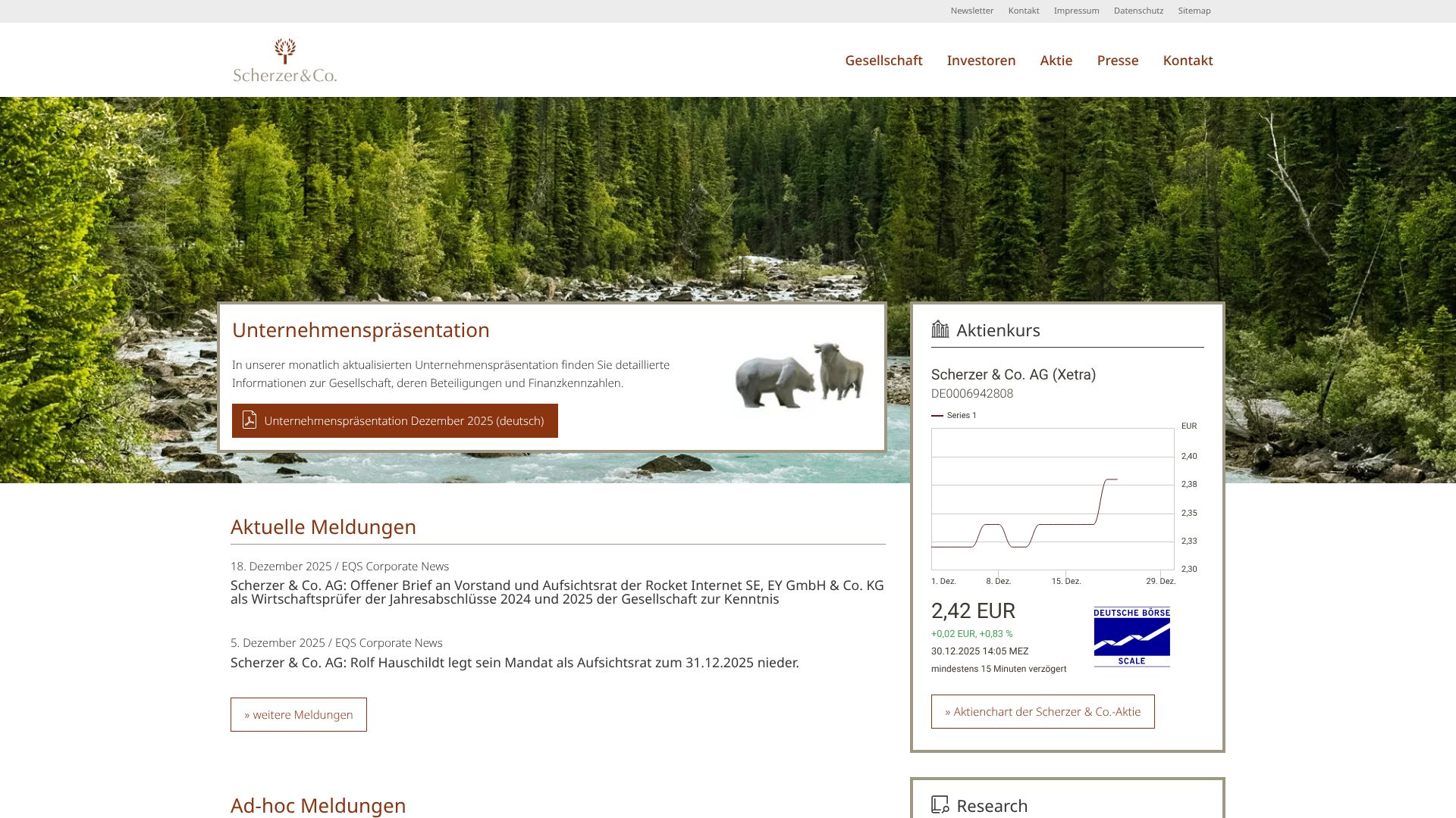 For boersengefluester.de (BGFL), the visualisation of financial information does not end with the usual valuation ratios and share charts. We find it just as exciting to see how professionally the companies in our database present themselves on the Internet. In this overview, we offer an exclusive eye-catcher with regularly updated visual impressions of all websites - including links to the websites. Tip for graphic designers, IR agencies and marketing experts: The five small dots above the sedcards show which colour scheme the respective companies use on the Internet. If you switch to the view with the three horizontal bars, the exact colour code is also displayed. All in all, a service package that is probably unique for financial websites in Germany with this pronounced attention to detail - typical boersengefluester.de.